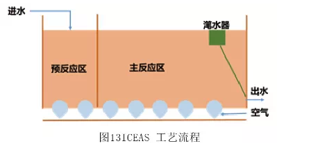 80 年代初,連續(xù)進(jìn)水的 ICEAS 工藝誕生(如圖13)。該工藝在傳統(tǒng)的SBR工藝基礎(chǔ)上,在反應(yīng)池中增加一道隔墻 ,將反應(yīng)池分隔為小體積的預(yù)反應(yīng)區(qū)和大體積的主反應(yīng)區(qū),污水連續(xù)流入預(yù)反應(yīng)區(qū),然后通過(guò)隔墻下端的小孔以層流速度進(jìn)入主反應(yīng)區(qū),解決了間歇式進(jìn)水的問(wèn)題。