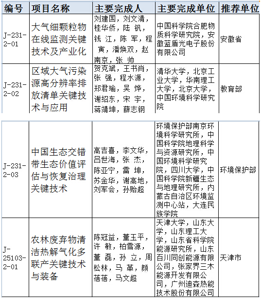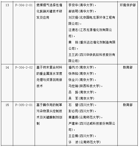 2015年度國(guó)家科學(xué)技術(shù)進(jìn)步獎(jiǎng)獲獎(jiǎng)項(xiàng)目(環(huán)保相關(guān))