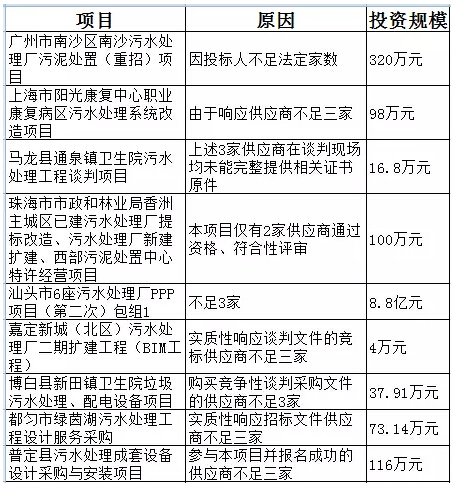 桂林興安縣城北污水處理廠工程BT融資項(xiàng)目:投資5313.8萬元,金額明明很可觀呀?失敗原因竟然是“無投標(biāo)單位遞交投標(biāo)文件”。別家好歹是“不足3家”,這廂竟然一家未應(yīng),真是沒有最冷只有更冷。