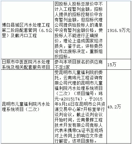 小編粗略整理了下2015年內(nèi)較有代表性的污水廠招標(biāo)失敗案例,就出來了這么大一個表格: