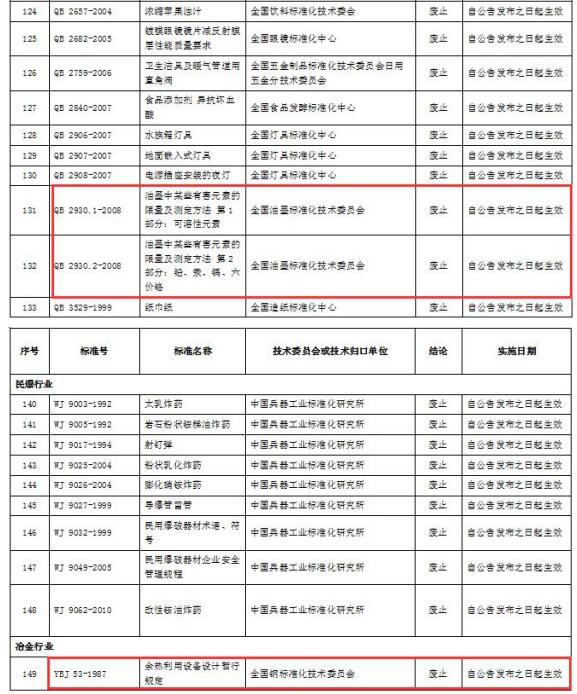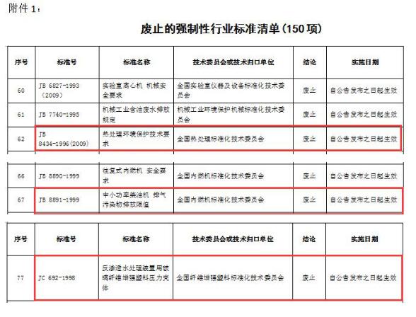2017年4月14日 工信部決定廢止150項強制性行業(yè)標準 環(huán)保相關(guān)的是這些! 國家工信部官網(wǎng)4月5日最新公布工信部廢止的強制性行業(yè)標準清單(150項)以及轉(zhuǎn)為推薦性的強制性行業(yè)標準清單(354項) ,與環(huán)保相關(guān)的如下: 2017年4月14日