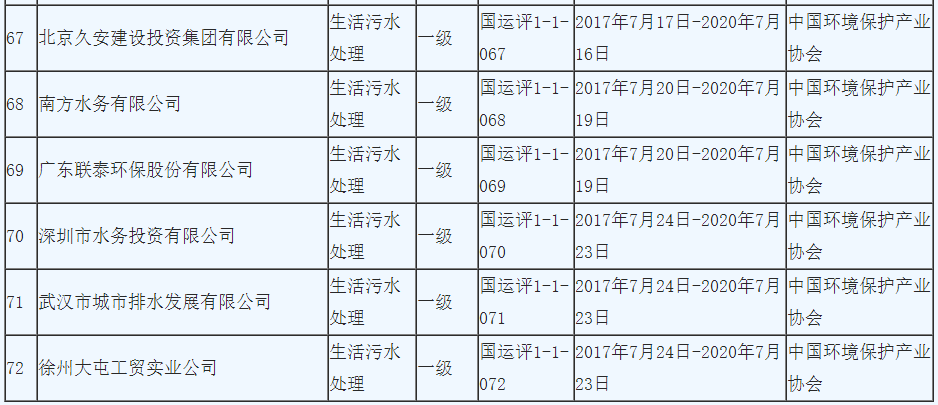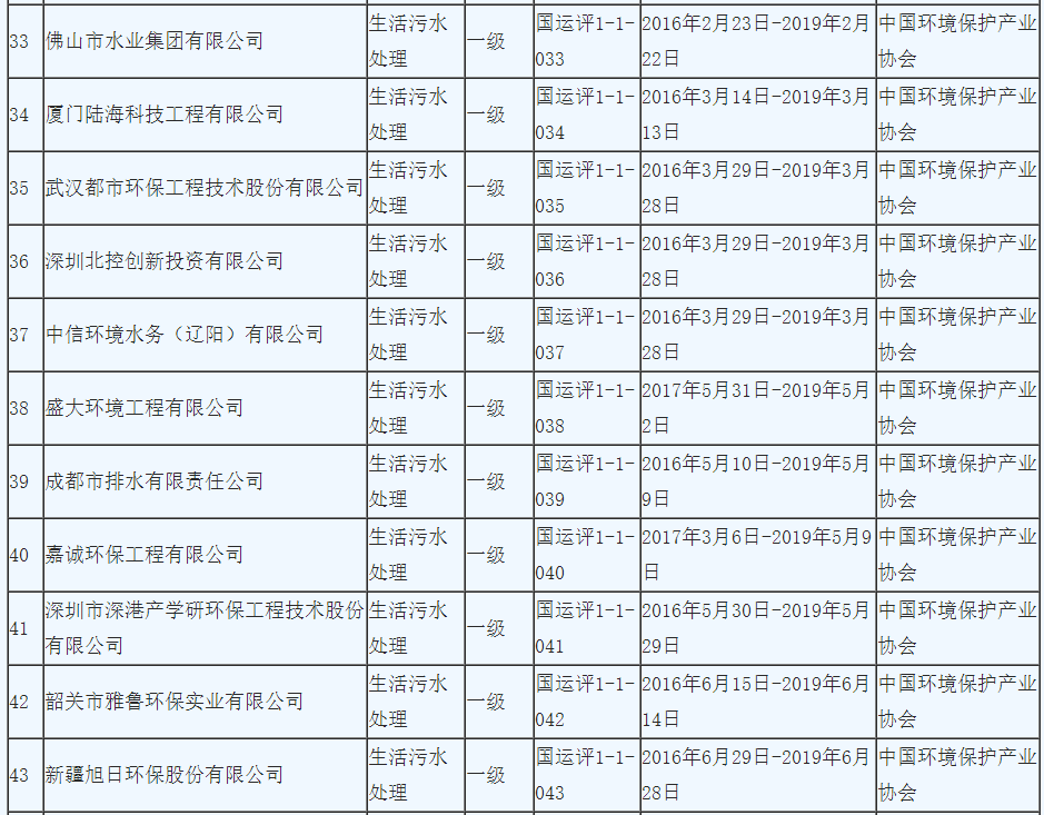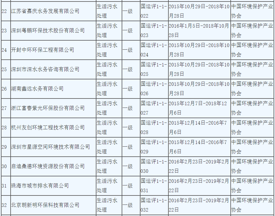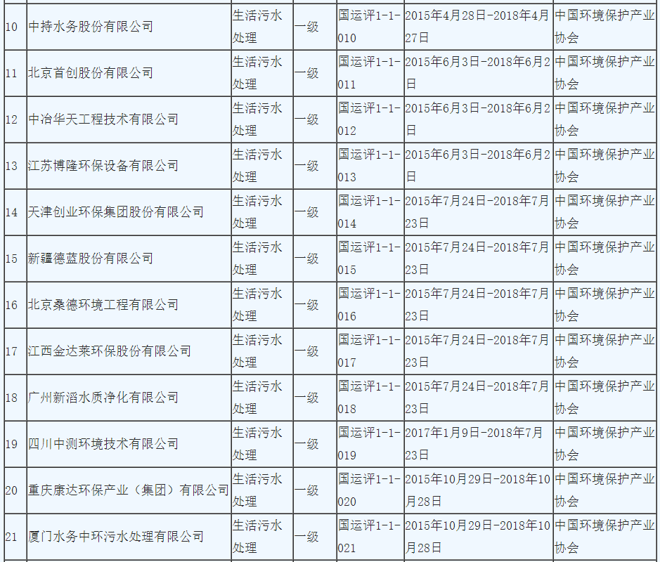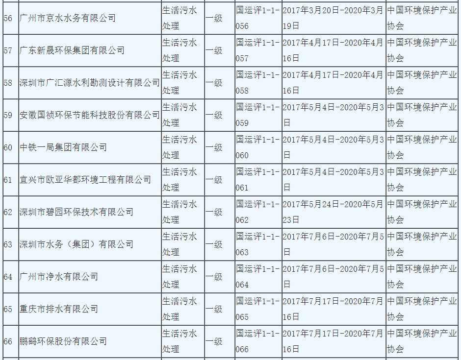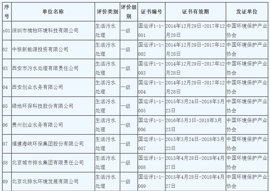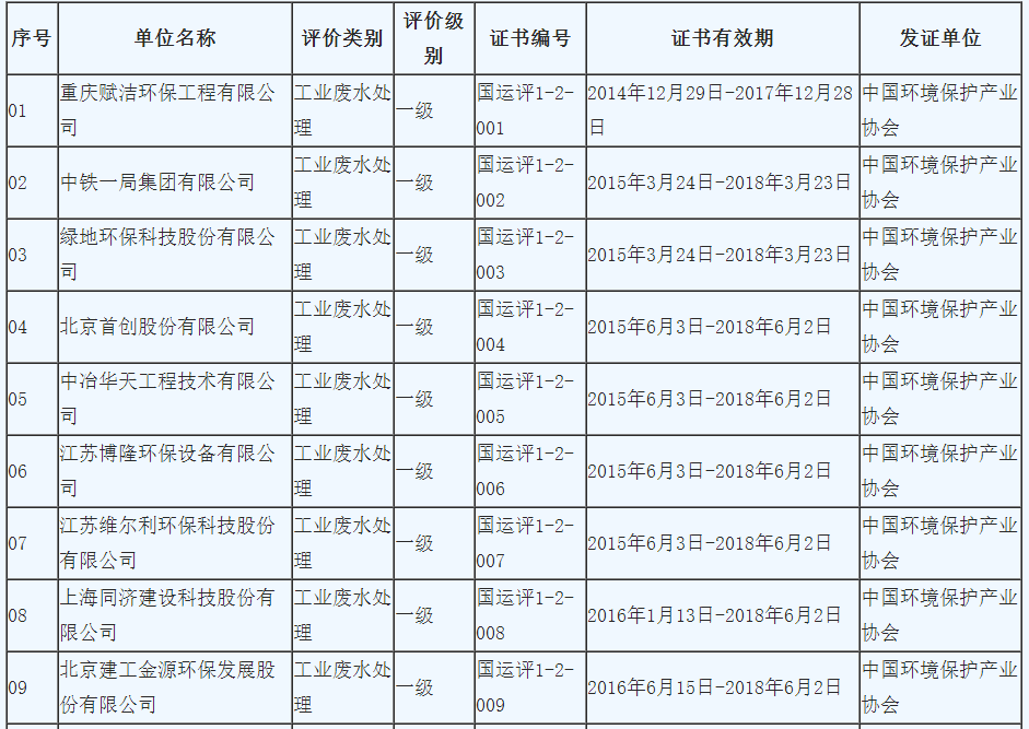 通過污染治理設(shè)施運行服務(wù)能力評價(一級)的單位: