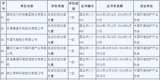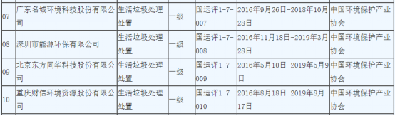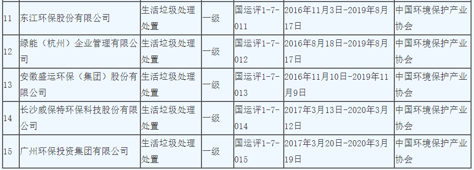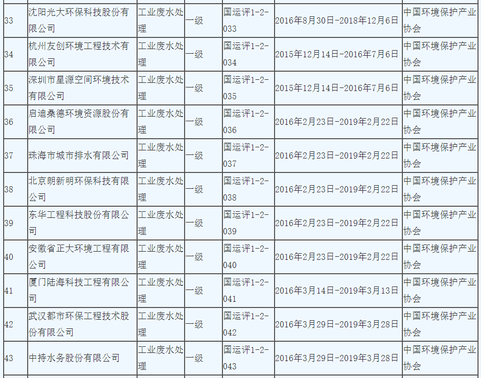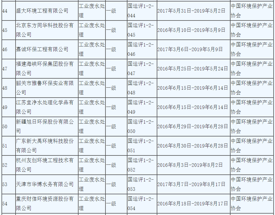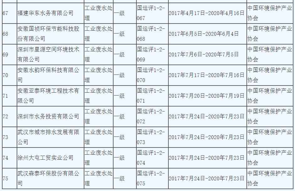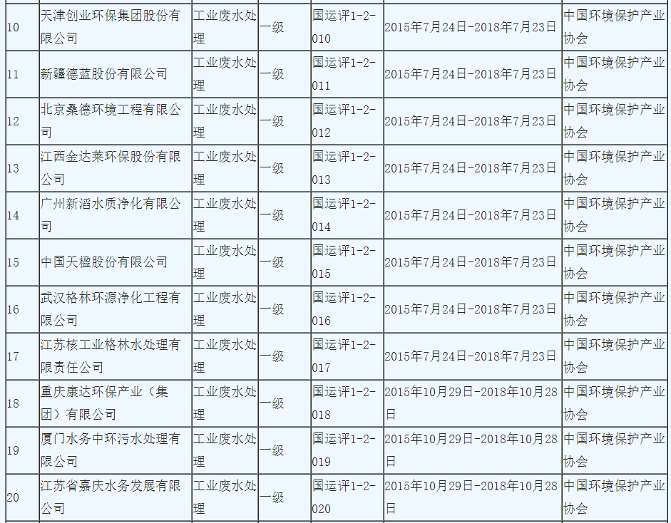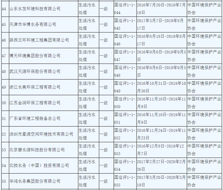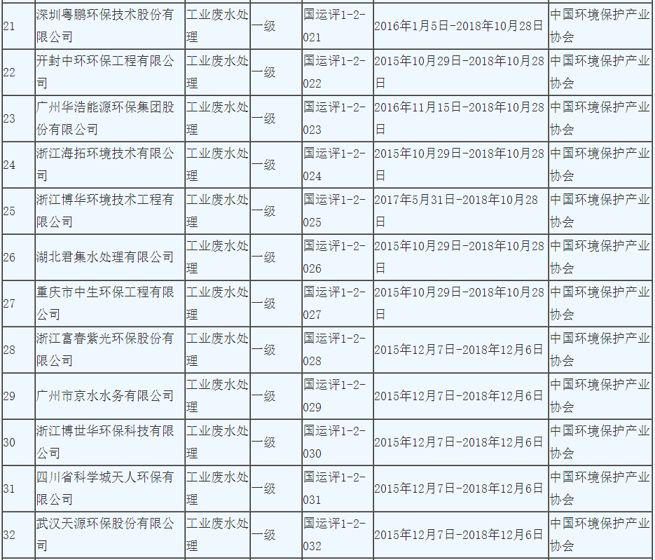 通過污染治理設(shè)施運行服務(wù)能力評價(一級)的單位:
