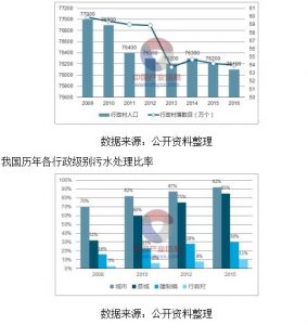 最后,技術(shù)工藝多樣,單體項(xiàng)目小,成本收益比率是關(guān)鍵目前主要的農(nóng)村污水處理工藝可以分為三大類(lèi):分散式,集中式和管網(wǎng)截污式。具體地有動(dòng)力地埋式一體化處理技術(shù),凈化沼氣池技術(shù),跌水充氧生物接觸氧化技術(shù),人工濕地技術(shù)等。需要注意的是,雖技術(shù)多樣,但是普遍存在單體量較小的問(wèn)題: 5000 噸/天的項(xiàng)目已經(jīng)可以和一些鎮(zhèn)級(jí)單位污水處理廠媲美,大部分在 1000 噸/天以下,模塊化設(shè)備規(guī)模約 300-500 噸/天,單體項(xiàng)目投入在千萬(wàn)級(jí)別,但是如管道運(yùn)輸距離太遠(yuǎn),成本則會(huì)大幅增加。考慮到農(nóng)村污水處理費(fèi)依然未全面征收,目前行業(yè)運(yùn)營(yíng)的主要模式依然是, 1)當(dāng)?shù)卣\(yùn)營(yíng),企業(yè)負(fù)責(zé) EPC; 2)當(dāng)?shù)卣?cái)政補(bǔ)貼,企業(yè)負(fù)責(zé) BOT,補(bǔ)貼來(lái)自市一級(jí)或者更高級(jí)財(cái)政撥款。單位補(bǔ)貼不會(huì)太高,一般低于 1 元/噸,部分地區(qū)甚至低于 0.8 元/噸,這導(dǎo)致成本成為農(nóng)村污水項(xiàng)目盈利的主要影響因素。企業(yè)的補(bǔ)貼幅度取決于企業(yè)在當(dāng)?shù)氐恼稳嗣}。我們認(rèn)為核算農(nóng)村水務(wù)市場(chǎng),需要先假設(shè)幾個(gè)關(guān)鍵的因素, 1)我們認(rèn)為只有行政村才會(huì)獲益農(nóng)村污水處理,因?yàn)橐话阏J(rèn)為具有村委會(huì)的村落會(huì)比自然村具有更多的人口和活力。2)我們認(rèn)為一般 5-10 個(gè)村落會(huì)共享一個(gè)污水處理站,因?yàn)槲覀冇?jì)算出 15 年平均每個(gè)全國(guó)行政村的人口不超過(guò) 1500 人,顯然每個(gè)村落都安放污水處理站經(jīng)濟(jì)上是不劃算,也是不現(xiàn)實(shí)的。第三點(diǎn),我們認(rèn)為單位投資額在 2-3 萬(wàn)元/噸/天,而目前實(shí)際披露出來(lái)的一些項(xiàng)目,單位投資要高于這個(gè)標(biāo)準(zhǔn),我們只選取一個(gè)保守的估計(jì)?;谝陨霞僭O(shè),我們計(jì)算出,如果全國(guó)的農(nóng)村污水處理可以執(zhí)行到位的話,潛在的投資需求將超過(guò) 4000 億,而帶來(lái)的運(yùn)營(yíng)收入也將超過(guò) 100 億。(我們認(rèn)為 0.8 元/噸的運(yùn)營(yíng)收入是偏保守的估計(jì),畢竟目前大規(guī)模的城鎮(zhèn)污水廠,成本也難以完全做到低于 0.8 元/噸)