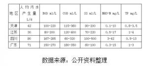 其次,地域污水情況差距巨大,區(qū)域市場(chǎng)需要深耕。我國(guó)地域廣袤,不同地區(qū)生活習(xí)俗,飲食等習(xí)慣有很大差別,這也導(dǎo)致不同地區(qū),甚至在南方某些省份,同一個(gè)省的不同地區(qū),農(nóng)村污水的污染物含量具有很大不同,此外,平均每天污水的產(chǎn)生量并不足以反映全部的污水產(chǎn)生情況,有些地方高峰集中,有些地方較舒緩,對(duì)于系統(tǒng)的抗沖擊型,以及緩沖系統(tǒng)的設(shè)計(jì)都有不同要求。有些地區(qū)以生活污水為主,而有些地區(qū)又兼有工業(yè)污水。因此,農(nóng)村水務(wù)的巨大差異很難要求企業(yè)像城鎮(zhèn)污水一樣標(biāo)準(zhǔn)化推廣,而是要在不同地區(qū)進(jìn)行調(diào)試,深耕。農(nóng)村污水的這些特點(diǎn)也造成了這個(gè)板塊極強(qiáng)的地域性。