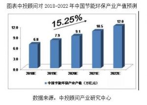 “十二五”以來,我國節(jié)能環(huán)保產(chǎn)業(yè)發(fā)展勢頭強(qiáng)勁,產(chǎn)值由2010年的2萬億元增長到2015年的4.55萬億元。我們預(yù)計(jì),2018年我國節(jié)能環(huán)保產(chǎn)業(yè)產(chǎn)值將達(dá)到6.8萬億元,未來五年(2018-2022)年均復(fù)合增長率約為15.25%,2022年將達(dá)到12.0萬億元。
