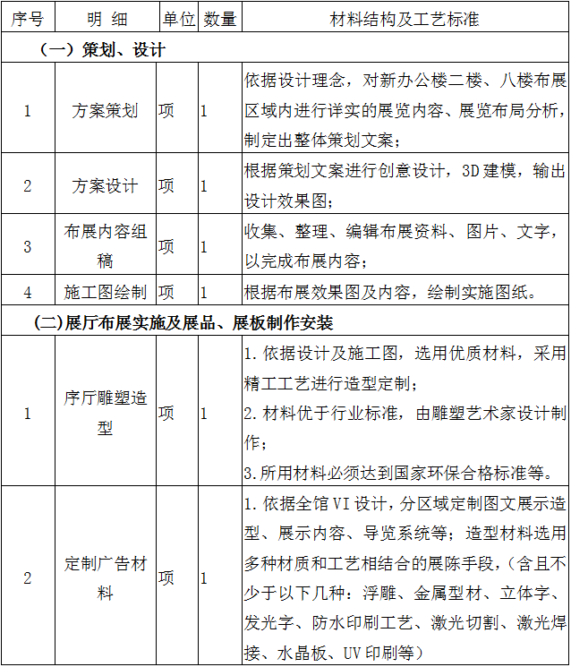 注:(1)本次采購項(xiàng)目最高限價(jià)<100萬元,報(bào)價(jià)人報(bào)價(jià)包含為達(dá)到采購人本項(xiàng)目驗(yàn)收要求,經(jīng)采購人驗(yàn)收合格并交貨完畢所發(fā)生的一切費(fèi)用,其工作內(nèi)容包含黨建文化館設(shè)計(jì)、展陳物料定制制作及配套設(shè)備采購供貨、包裝、運(yùn)輸(送至甲方指定地點(diǎn))、設(shè)計(jì)圖紙及技術(shù)文案資料等;以及實(shí)施過程中所需的一切人工、物耗、工具、裝卸、布展施工、安裝調(diào)試、驗(yàn)收、稅金、保險(xiǎn)、檢驗(yàn)及售后服務(wù)等一切費(fèi)用;報(bào)價(jià)人應(yīng)仔細(xì)核實(shí)項(xiàng)目正常、安全穩(wěn)定運(yùn)作及使用所必需的費(fèi)用。報(bào)價(jià)人的報(bào)價(jià)≧100萬元屬無效報(bào)價(jià)。