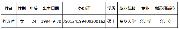 根據(jù)國(guó)家人社部要求,現(xiàn)將福建海峽環(huán)保集團(tuán)股份有限公司擬錄用2019屆畢業(yè)生情況予以公示,公示名單如下: