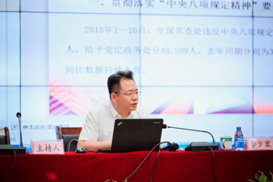 李少宏圍繞“八項(xiàng)規(guī)定”與“中央八項(xiàng)規(guī)定精神”的區(qū)別、違反“中央八項(xiàng)規(guī)定精神問題”與違反“廉潔紀(jì)律問題”的關(guān)系、十八大以來中央出臺(tái)改進(jìn)作風(fēng)的法規(guī)制度、違反“中央八項(xiàng)規(guī)定精神”行為的分類及黨員干部自律問題主要表現(xiàn)等方面,結(jié)合近年來省內(nèi)國有企業(yè)查處的案例,對(duì)中央八項(xiàng)規(guī)定精神內(nèi)涵、規(guī)定依據(jù)、行為底線等進(jìn)行深入淺出地解讀,對(duì)國有企業(yè)如何落實(shí)中央八項(xiàng)規(guī)定精神進(jìn)行答疑解惑,是一場(chǎng)有針對(duì)性、可操作、非常接地氣的講座。