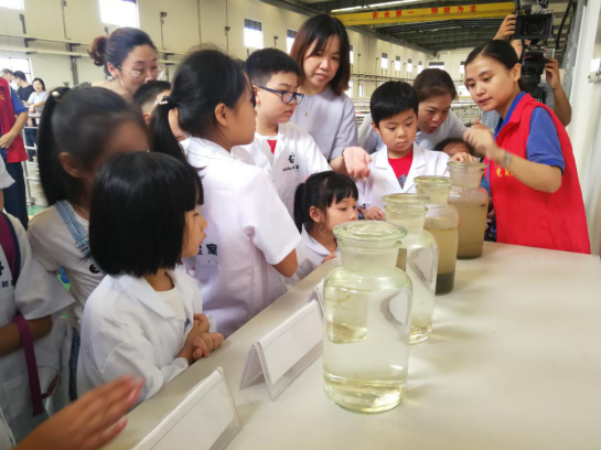 為貫徹新發(fā)展理念,充分發(fā)揮集團(tuán)文化資源優(yōu)勢(shì),給忙碌的員工創(chuàng)造親子互動(dòng)機(jī)會(huì),營造和諧氛圍,更好激發(fā)工作積極性和創(chuàng)造性,8月30日,在暑假即將結(jié)束的時(shí)候,集團(tuán)工會(huì)舉辦“跟著爸媽逛海環(huán)”親子研學(xué)活動(dòng)。這是集團(tuán)建設(shè)完工的觀光工廠迎來的第一批年輕的參觀者,從小學(xué)一年級(jí)到初一年齡不等的集團(tuán)職工子女約20人?;顒?dòng)既讓孩子們加深對(duì)爸爸媽媽工作環(huán)境的了解,也是提倡環(huán)??破諒耐尥拮テ鸬木唧w行動(dòng)。