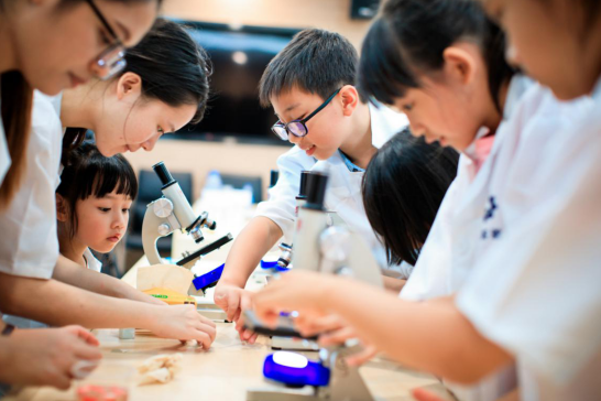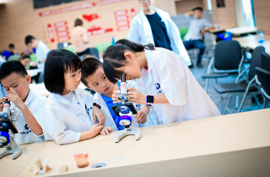 回到辦公樓二樓的傳習(xí)所,研學(xué)機(jī)構(gòu)的老師們開始掏出各種上課的“寶貝”,讓孩子們打開眼界。在不到一個(gè)小時(shí)的實(shí)驗(yàn)課上,大家在紙上畫出污水處理的幾大步驟,然后用3D打印筆制作了模擬格柵的過濾裝置,在顯微鏡下觀察污水中微生物的狀態(tài),每個(gè)小朋友都參與其中,認(rèn)真操作,儼然一副專業(yè)實(shí)驗(yàn)員的模樣。