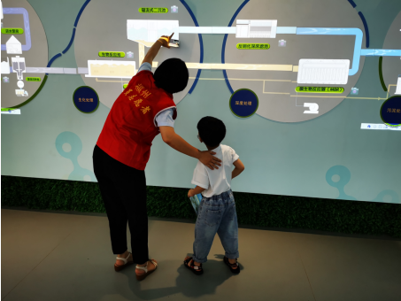 接著第二站來(lái)到生動(dòng)形象的環(huán)保科教館。在這里專業(yè)生產(chǎn)技術(shù)人員結(jié)合現(xiàn)場(chǎng)各種模型、互動(dòng)屏等,把古今中外的污水治理歷史、現(xiàn)代污水處理技術(shù)和循環(huán)城市理念展現(xiàn)在孩子們面前。