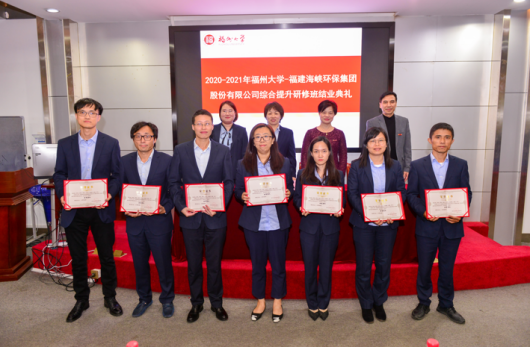 10月24日,集團2020-2021年度綜合提升研修班結(jié)業(yè)典禮在福州大學(xué)經(jīng)濟管理學(xué)院(以下簡稱“福大經(jīng)管學(xué)院”)禮堂隆重舉行。集團黨委書記、副董事長陳秋平,副總裁程晶與福大經(jīng)管學(xué)院黨委書記李玲、院長助理黃建華等出席結(jié)業(yè)典禮。集團中層管理人員以及分子公司外派高級管理人員共計35名學(xué)員歷時一年多的學(xué)習(xí),順利通過結(jié)業(yè)考核,喜獲福州大學(xué)結(jié)業(yè)證書。