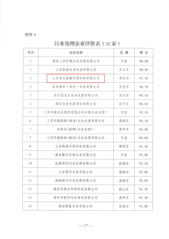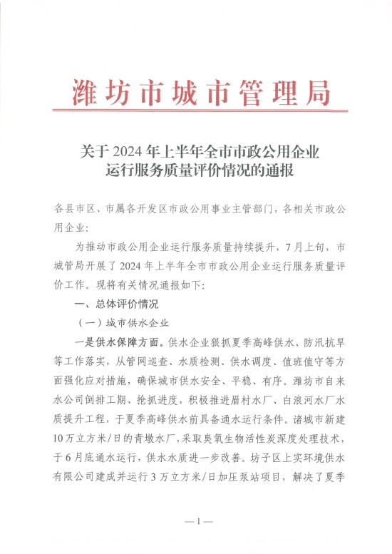 在2024年上半年濰坊市市政公用企業(yè)運(yùn)行服務(wù)質(zhì)量評(píng)價(jià)中,壽光公司憑借在科技應(yīng)用與節(jié)能減排等方面的卓越表現(xiàn),榮獲全市污水處理企業(yè)第二名的佳績(jī)。這項(xiàng)榮譽(yù)的取得不僅是對(duì)壽光公司運(yùn)營(yíng)服務(wù)能力的肯定,更是對(duì)其在推動(dòng)城市高品質(zhì)發(fā)展道路上不懈努力的認(rèn)可。